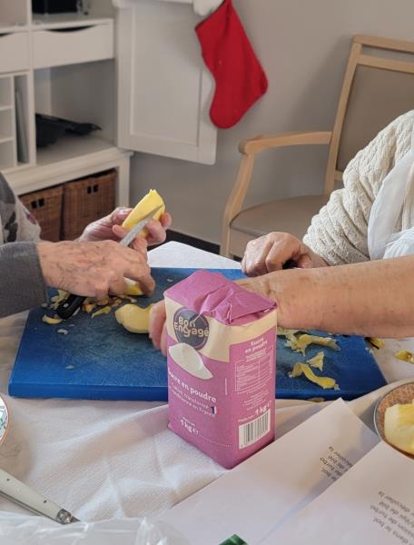 Les Jardins Médicis > Actualités > Atelier cuisine - Tarte aux pommes et compote Atelier cuisine - Tarte aux pommes et compote Publiée le 14/01/2026 Nouvelle année, nouvelle recette... déjà bien appréciée par les résidents !