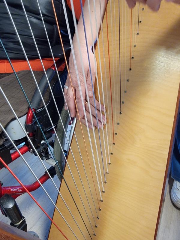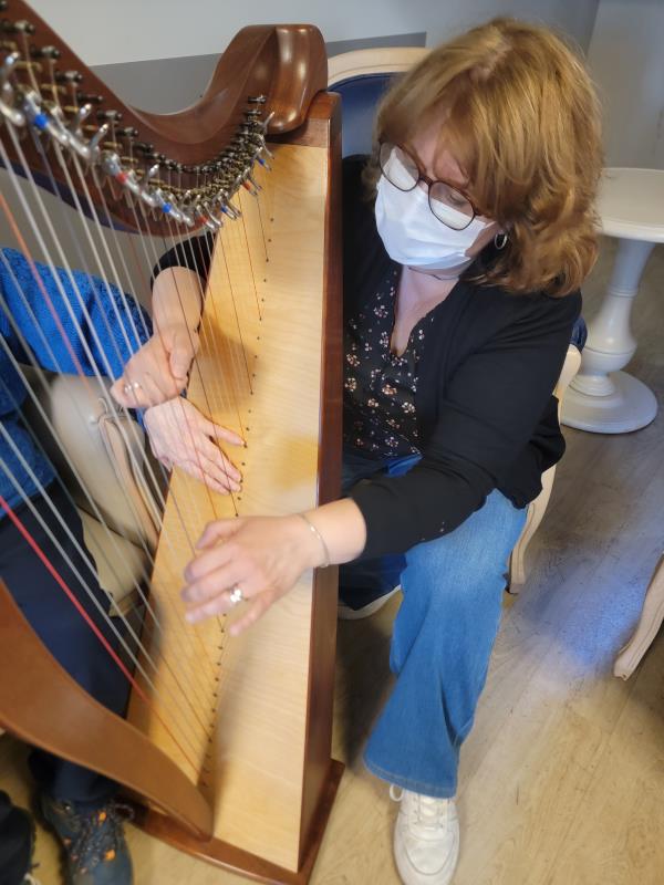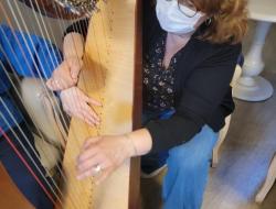 Comme tous les mardis soirs, Agnès la harpe-thérapeute se rend aux Jardins Médicis pour partager avec les résidents un instant hors du temps.