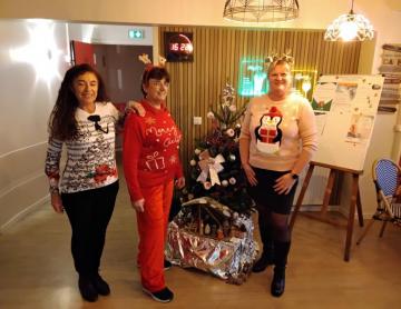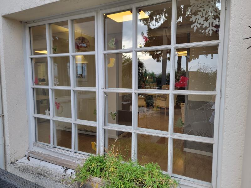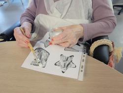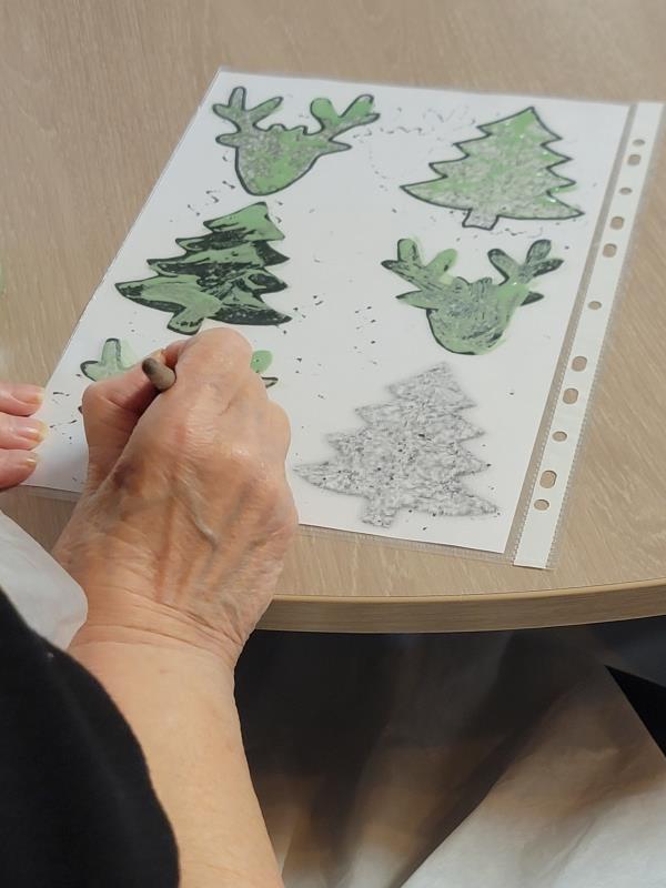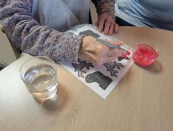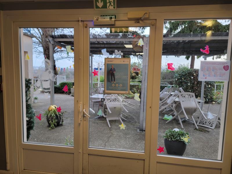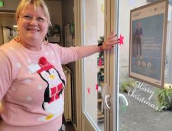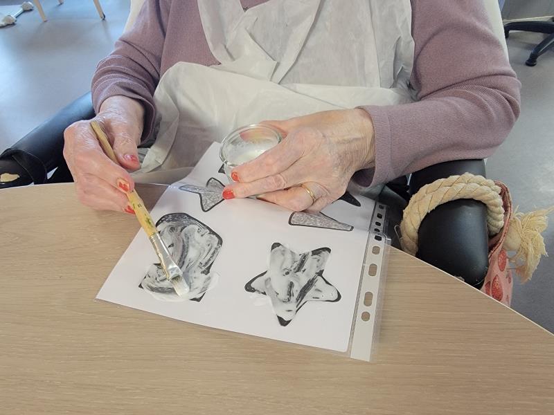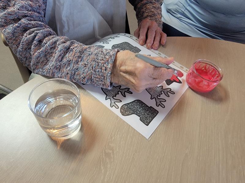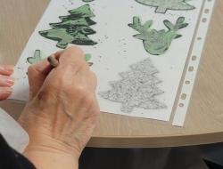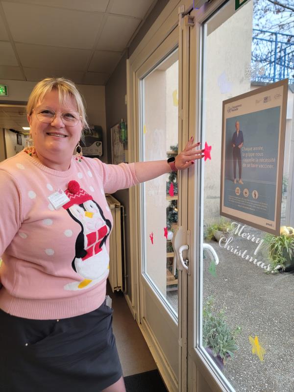 Les résidents sont donc très minutieux pour la réalisation de ces auto-collants pour vitre. Après une nuit de séchage, c'est l'heure du collage... et même la directrice remonte les manches !